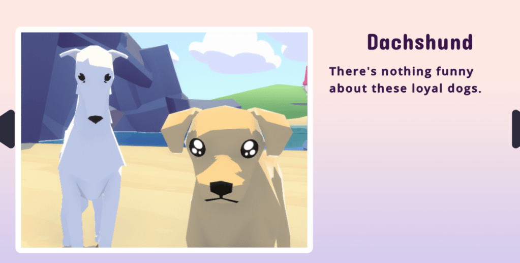 The way the dogs move is hilarious. The lack of animation in their body is perfect. It isn’t something that I thought I would like, but when you enter an environment full of these goofy dogs, you can’t help but smile. Considering they are stiff as literal boards, they still have so much personality. Their faces and responses are animated giving them a lot of character, and each breed is instantly recognisable.